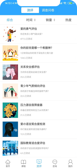 亲子、婚恋、健康、能力、职场、其他六大分类,涵盖心理全方位。